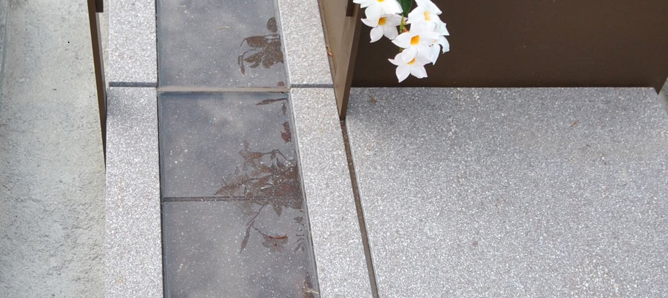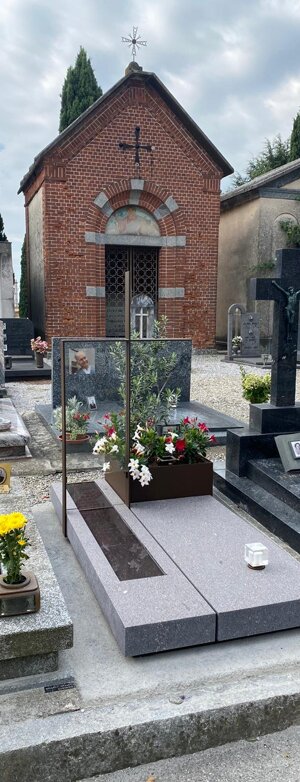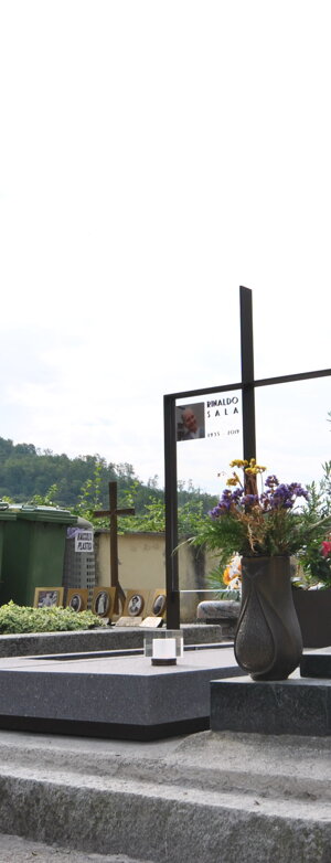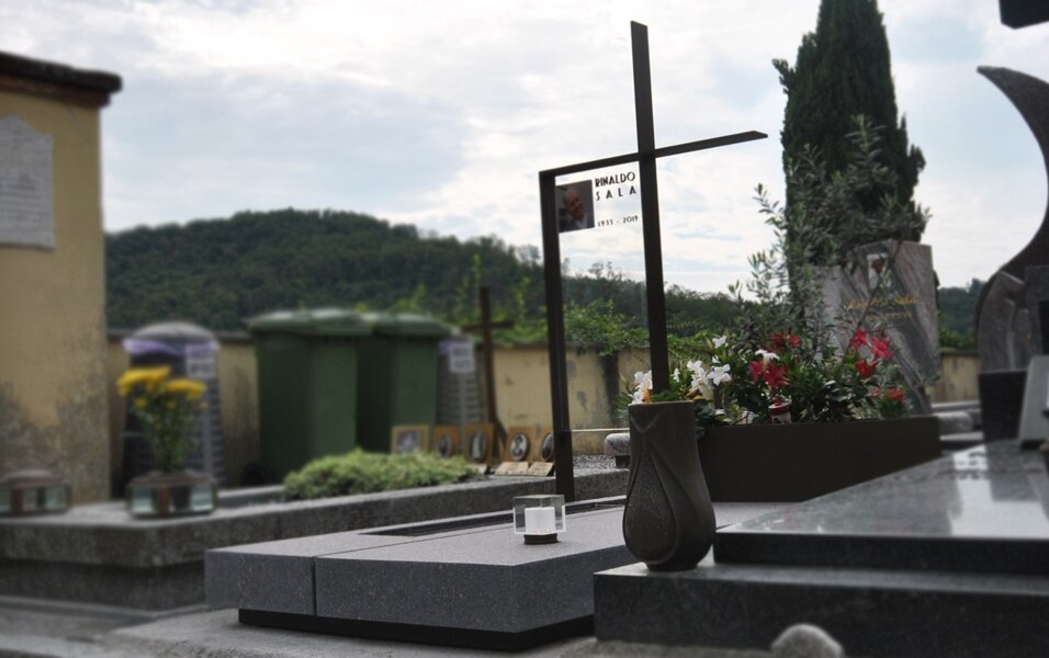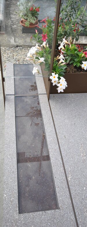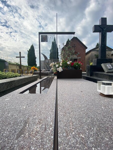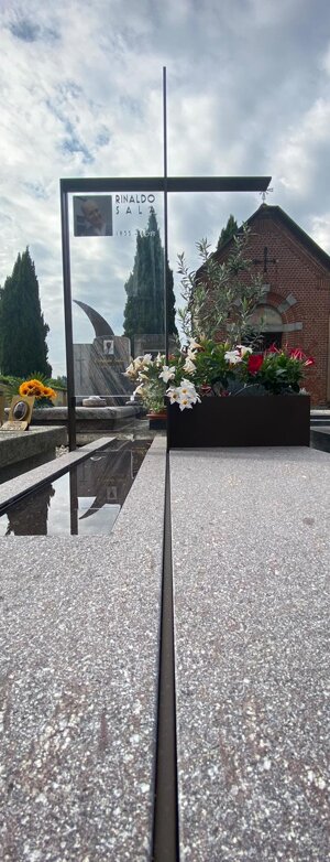 Monumento funebre in porfido, acciaio e vetro.